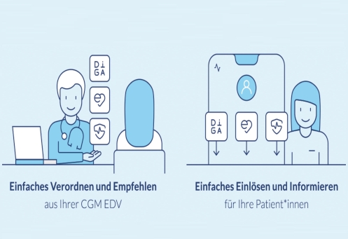 Die Liste der vom BfArM gelisteten DiGA, die extrabudgetär abgerechnet werden, wächst mit jedem Monat. Die Anwendungsbereiche reichen von Stress- und Angstbehandlungsangeboten über Migräne- und Adipositastherapien bis hin zum Nachsorgebegleiter bei Apoplex-Patienten. Mit der kostenlosen Aktivierung und Nutzung des CGM APP VERORDNUNGSCENTERS in den jeweiligen Praxis-EDV-Systemen (Arztinformationssystemen) CGM ALBIS, CGM TURBOMED, CGM M1 PRO und CGM MEDISTAR wird die Verordnung von "Apps auf Rezept" zum Selbstläufer im Praxisalltag.