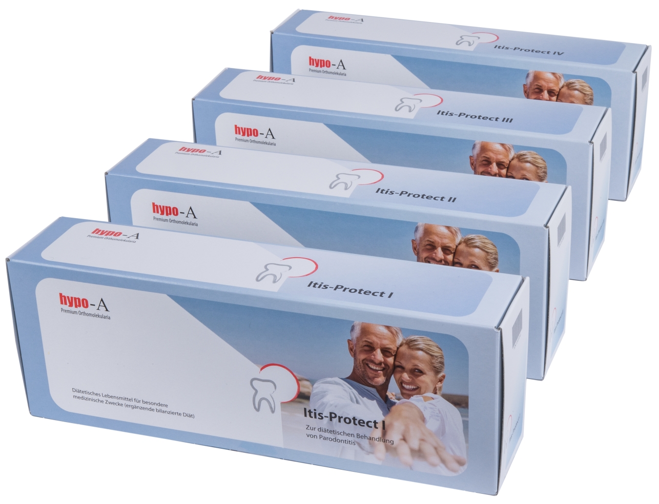 Itis-Protect von hypo-A ist eine effektive, natürliche und vor allem systemische Behandlung von Parodontitis, die sich auch für Allergiker eignet. Eine gleichzeitige Erhöhung der Ernährungsqualität und Reduktion von Nahrungsgiften wie Farb-, Aroma- und Konservierungsstoffen ist empfehlenswert.