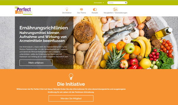 Um das zu fördern und die Lebensqualität von Parkinsonerkrankten positiv zu beeinflussen, haben sich europaweit renommierte Parkinson-Verbände, Neurologen, Ernährungsexperten und Köche zusammen-geschlossen und mit Unterstützung der Zambon GmbH die Initiative My Perfect Dish initiiert. Als einzige Plattform bietet My Perfect Dish die Möglichkeit, sich über die Parkinson-Erkrankung und die Zusammenhänge mit der Ernährung ausführlich zu informieren. Das Herzstück der Plattform ist der über eine einfache Registrierung zugängliche Rezeptteil mit Fokus auf der Hauptmahlzeit am Mittag. Ganz besonders ist der speziell für die Community bereitgestellte Service, sich eigene Kochbücher zu kreieren und anhand der Rezepte ganz leicht eine Einkaufsliste zu erstellen.
